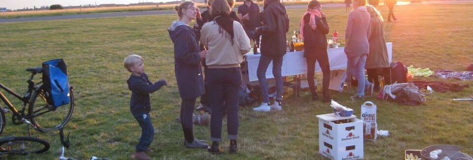 Wir grillen auf dem Tempelhofer Feld am "Mintgrünen Klassenzimmer", Eingang Oderstraße.